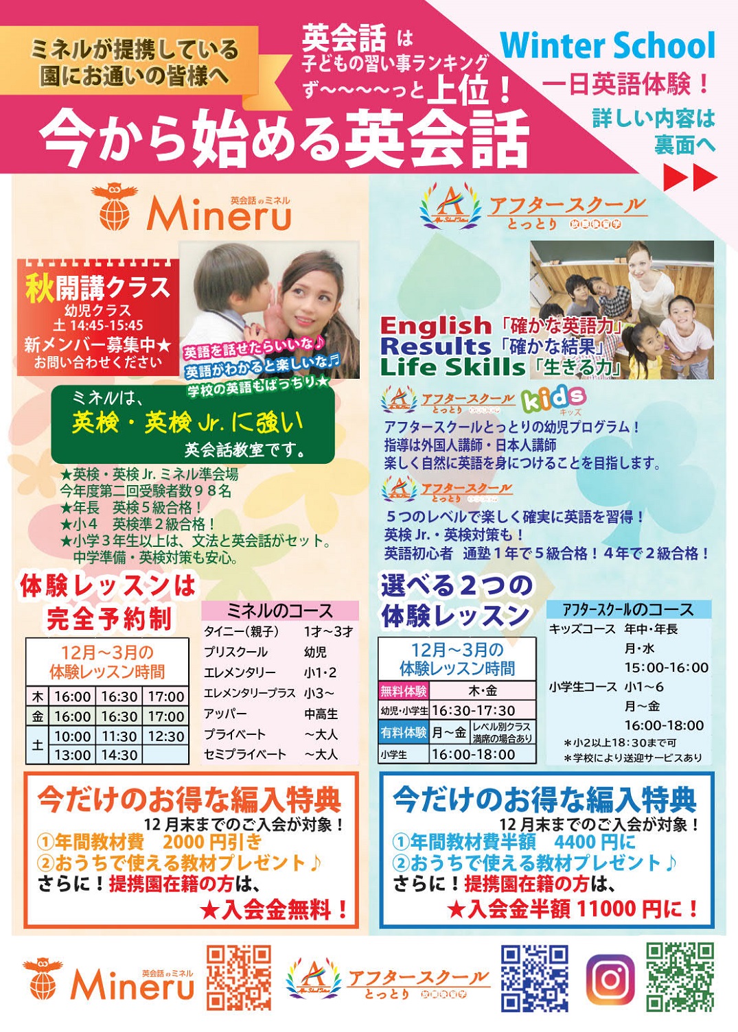 今後の英会話のミネル・アフタースクールとっとり運営について現段階で決定している内容をお伝えいたします。