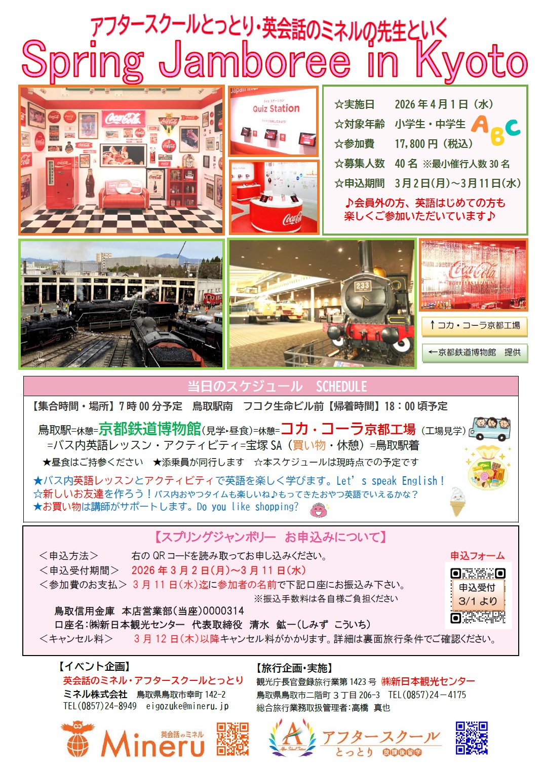英語講師といくバス旅行スプリングジャンボリーは京都・コカ・コーラ工場見学と鉄道博物館へ